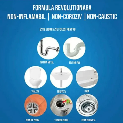 Formula anticoroziva - Nu dauneaza scurgerii, nu distruge conductele sau sistemul septic.